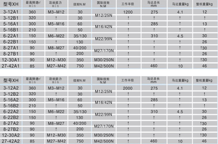 1微電腦控制,扭矩大小可調,盲孔不斷絲錐可根據攻絲的大小自行調節扭矩,加上扭力夾頭過載保護,雙重保護,不斷絲錐;主軸在半徑1200/2000MM內任意移動。